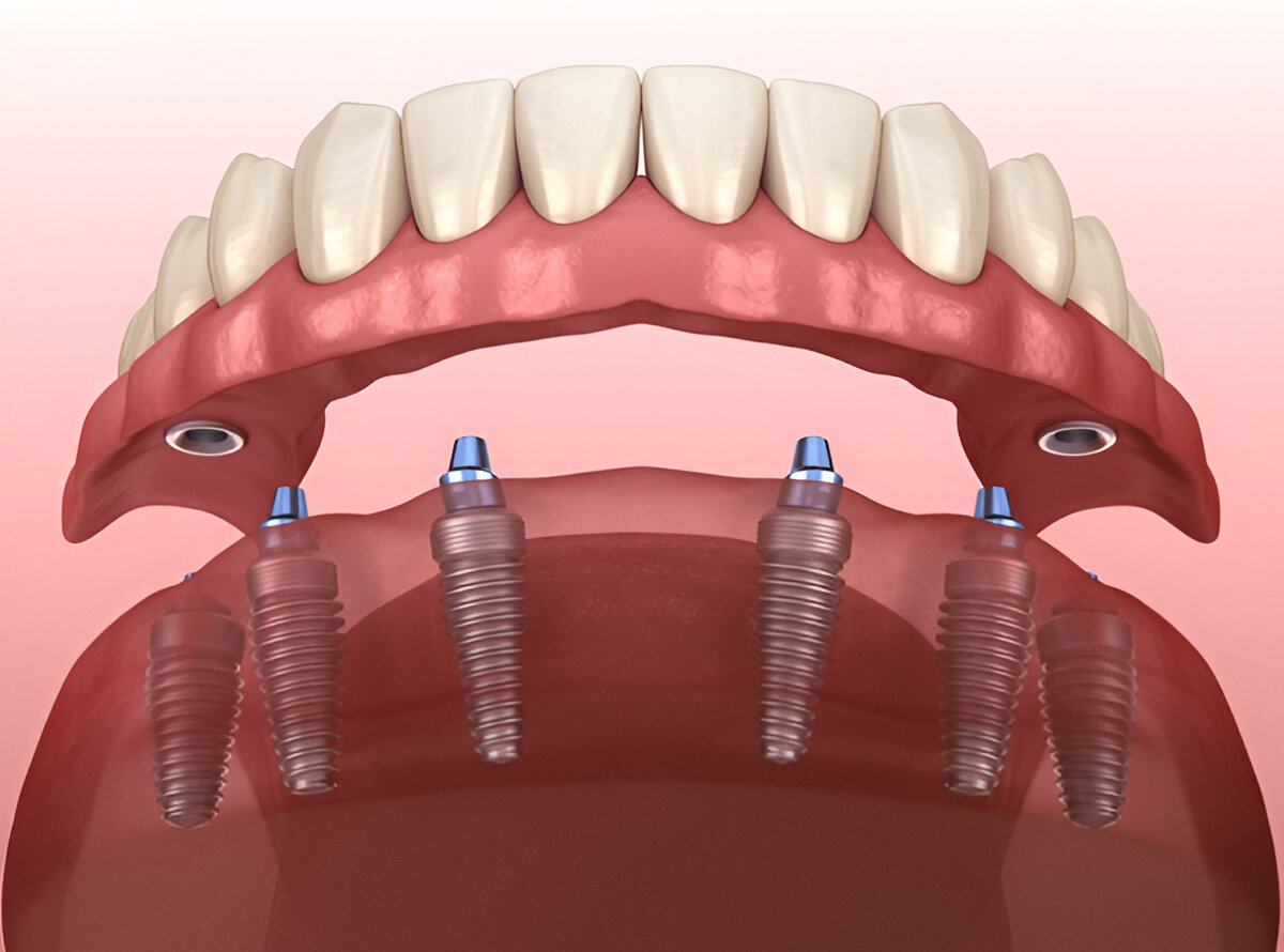 Gli impianti All on 6 garantiscono maggiore stabilità e supporto, ripristinando un'intera arcata dentale con sei impianti